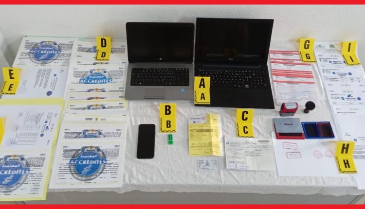 عمليات التفتيش داخل منزل المشتبه فيه الرئيسي بالمنطقة القروية “بولامن إدا أومنو”، أسفرت عن حجز حاسوب وهواتف ومعدات إلكترونية، إضافة إلى بطائق تعريفية ووثائق وشهادات دراسية في اسم الغير، فضلا عن أختام يشتبه في تزويرها تخص طبيباً ومحامياً.
