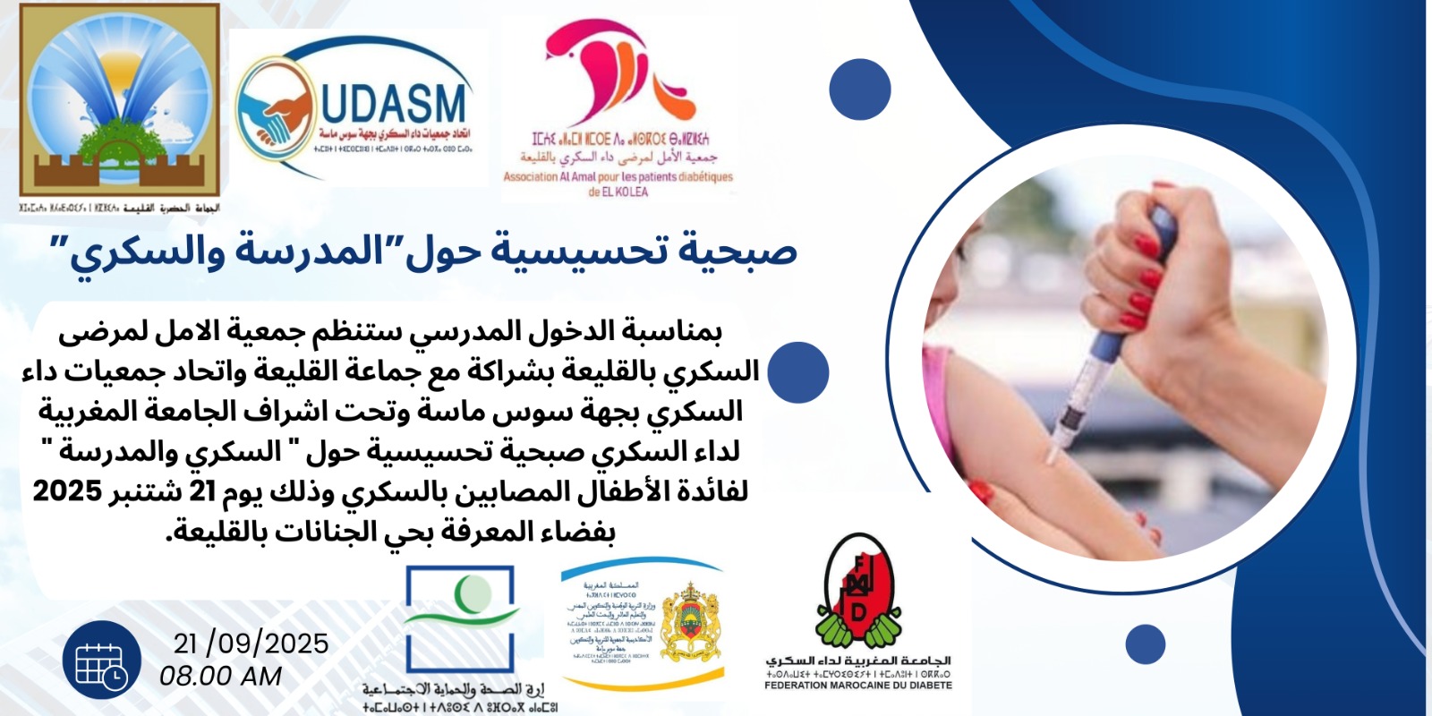 القليعة: صبحية تحسيسية حول “المدرسة والسكري” دعما للأطفال المصابين بالداء المزمن