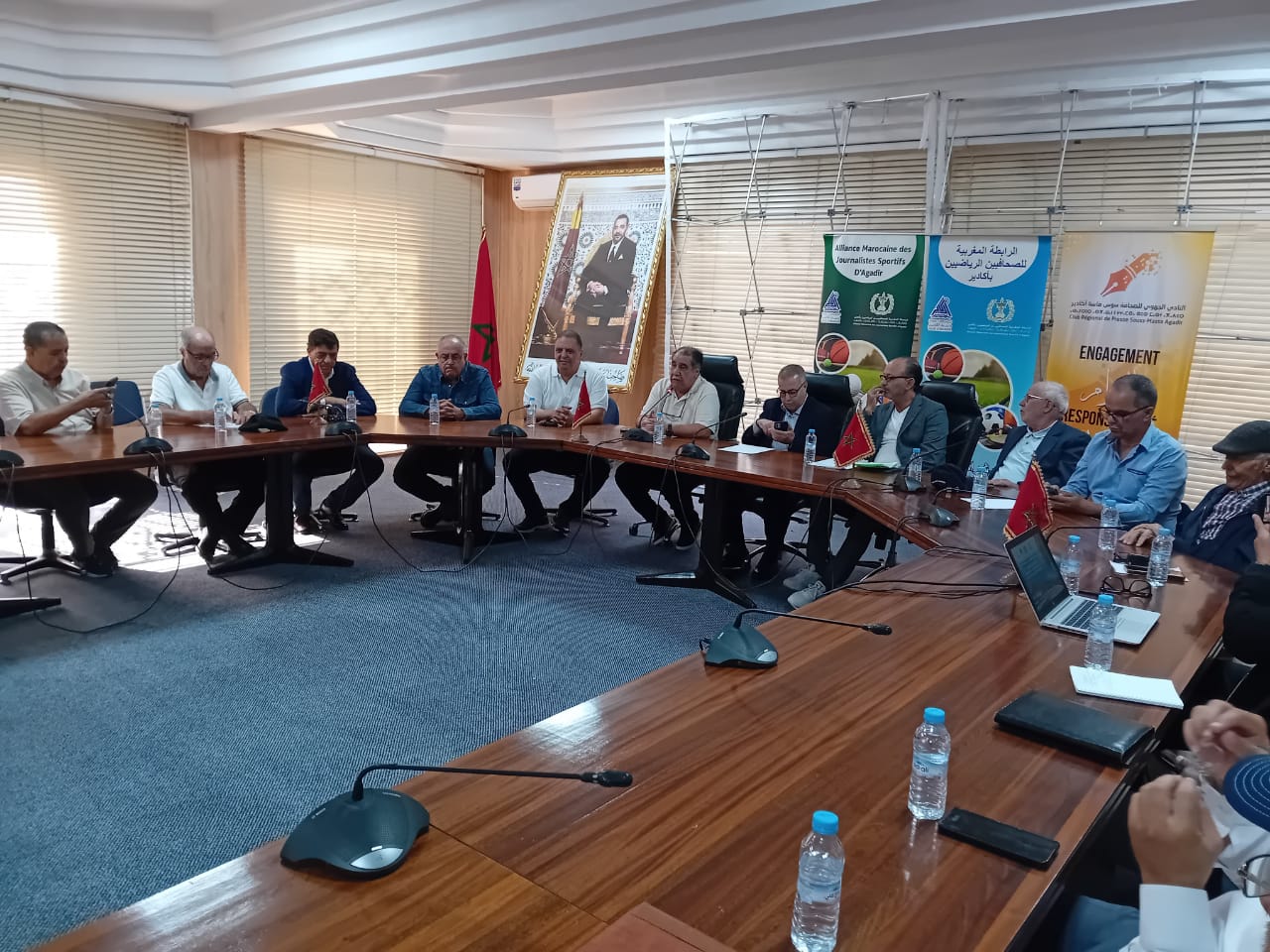 الرابطة المغربية للصحافيين الرياضيين بأكادير تناقش مع الدكتور عبد الرحيم غريب دور التظاهرات الكبرى في تحقيق التنمية بالمغرب في أفق “كان 2025″ و”كأس العالم 2030”