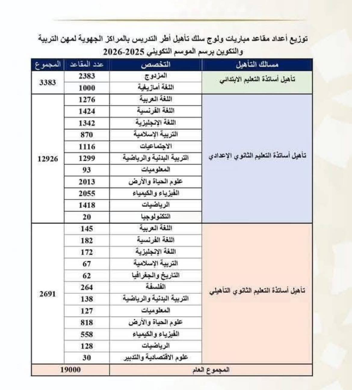 وكان مصطفى بايتاس الوزير المنتدب لدى رئيس الحكومة المكلف بالعلاقات مع البرلمان الناطق الرسمي باسم الحكومة، قد أعلن الخميس المنصرم أن مباراة ولوج مراكز مهن التربية والتكوين، خصص لها 20 ألف منصب مالي.