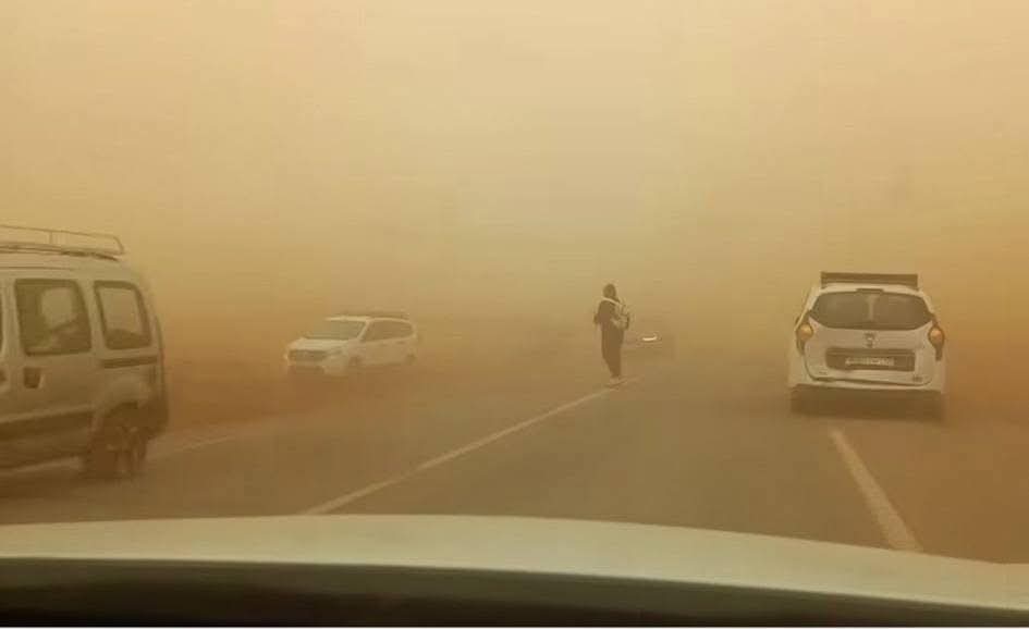 عا_صفة رملية قو_ية تضرب الجهة الشرقية وتتسبب في حادثة سير خط_يرة على الطريق بين الناظور ووجدة